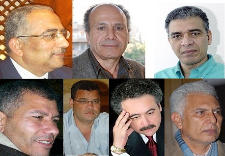 | فوق من اليسار: أحمد فضل شبلول، جمال القصاص ومحمد عيد ابراهيم، واسفل من اليسار: حمدي عابدين، علي عطا، د. علاء عبد الهادي ورفعت سلام |