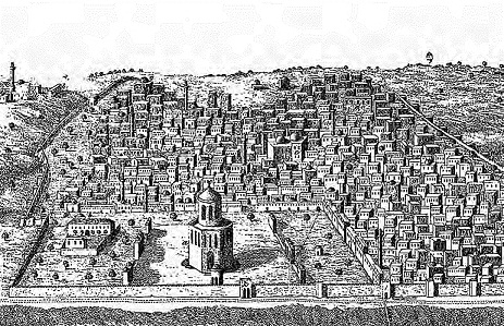 | quot;القدسquot; (1766)، منظر عام، الرسام: كارستن نيبور. |