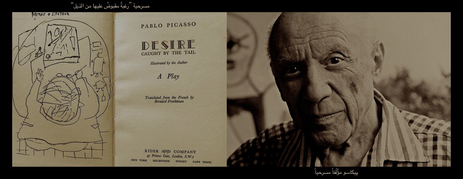 في شتاء عام ١٩٤١، بعد فترة وجيزة من احتلال الألمان لباريس، أمضى بيكاسو ثلاثة أيام في كتابة مسرحيته ”رغبة مقبوض عليها من الذيل“، رغم مرضه، وقد كتبها بالفرنسية، إلا أنها لم ترَ النور إلا في عام ١٩٤٤ حيث تم ادائها ”قراءةً“ لأول مرة في شقة الكاتب السوريالي والأثنوغرافي الفرنسي ميشيل ليريس من قِبَل سيمون دي وفوار، جان بول سارتر، فالنتين هوغو، ريموند كوينو، زاني أوبير، لويس ليرز، جان أوبير، دورا مار (عشيقة بيكاسو وحبيبتة) وبيكاسو نفسه. وقد قام بإخراج المسرحية الكاتب الفرنسي البرت كامو.