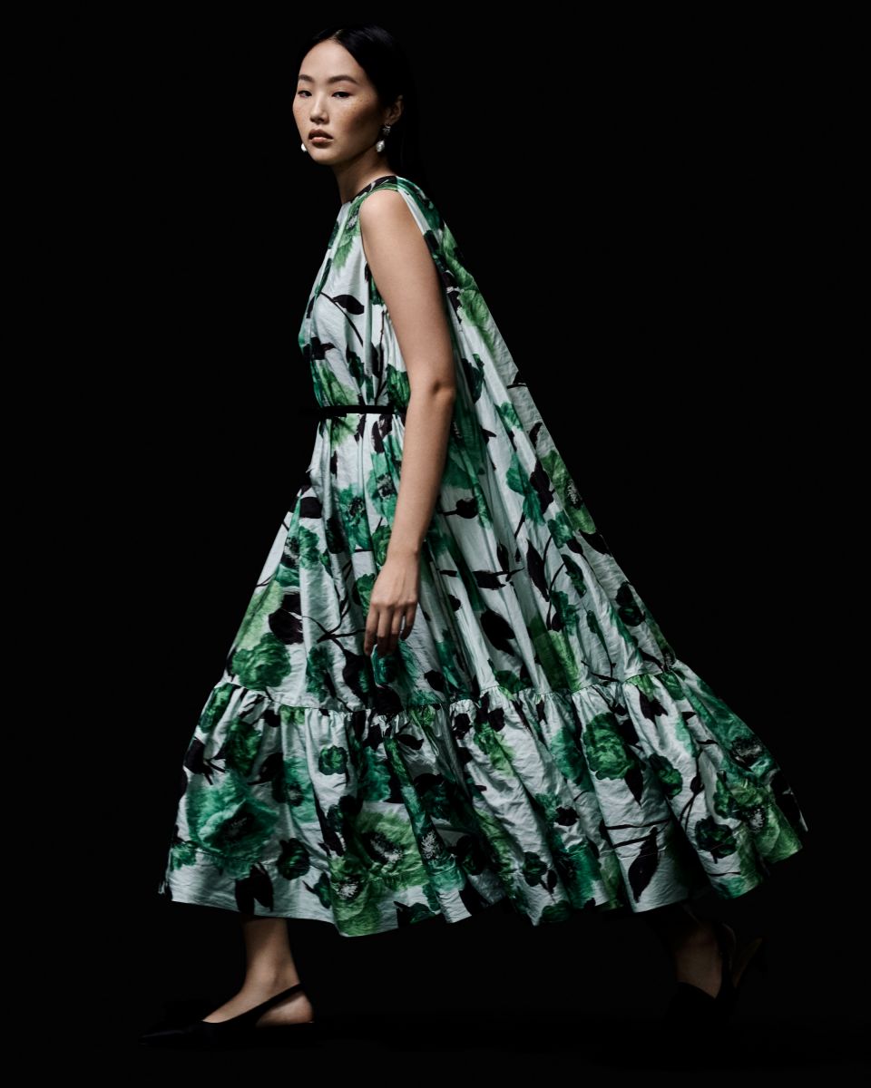 وتنسجم التفاصيل الجذابة والقصات الانسيابية والعناصر المستوحاة من أشكال النباتات، لتضفي على التصاميم لمسة مبتكرة وأثر يخطف الأنظار. كما تتألق التشكيلة بقصات وتفاصيل مستوحاة من أواخر ستينيات وسبعينيات القرن الماضي، لتشمل القصات الواسعة والفساتين بتصميم الياقة المفتوحة حتى الكتفين والمعاطف السميكة المميزة بقصة فضفاضة. وتتميز التشكيلة بتصاميم جريئة وواضحة تعكس صوت الفنانة القوي الذي وصفه النقاد بالتحفة الفنية التي لا تُنسى.