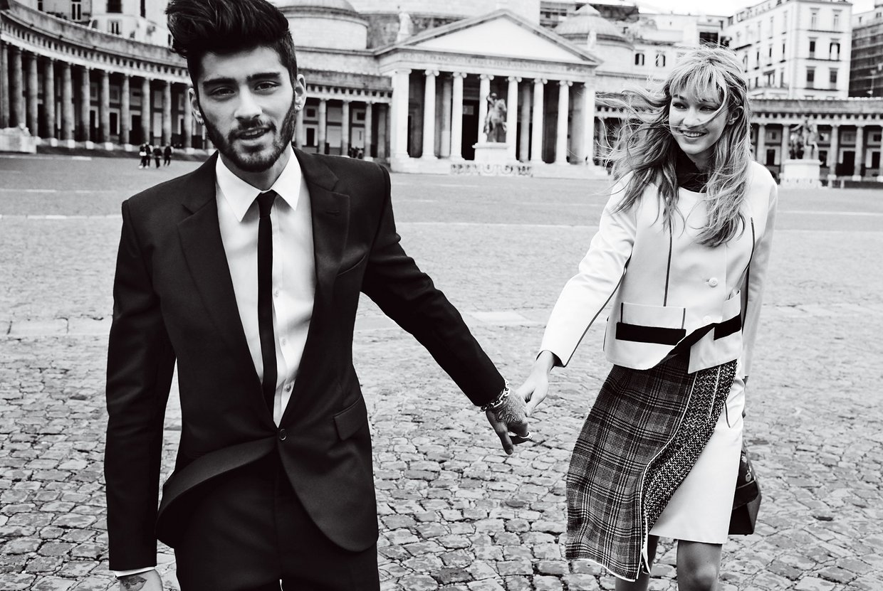 ونشرت المجلة هذه الصور تحت عنوان "جيجي حديد ومالك زين في إجازة نهاية أسبوع سعيدة في نابولي"، وقد تسربت الى معجبين ومعجبات النجمين قبل نشرها رسميًا على صفحات المجلة، واعتبرت هذه الصور خطوة ذكية لإظهار نجمين كبيرين على مواقع التواصل الإجتماعي في صورة واحدة على غلاف فوغ، وكانت المجلة قد أقدمت على خطوة مماثلة في شهر ايار (مايو) الماضي، عندما نشرت سلسلة من الصور الثنائية للعارضة كيم كاردشيان والمغني كانييه ويست.