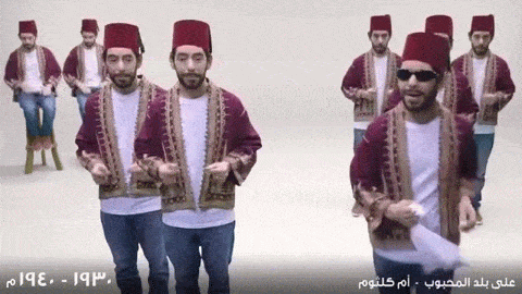 وينتقل الفنان السعودي إلى المطربة الشهيرة أم كلثوم بأغنية "على بلدي المحبوب وديني" التي اشتهرت بين عامي(1930-1940).