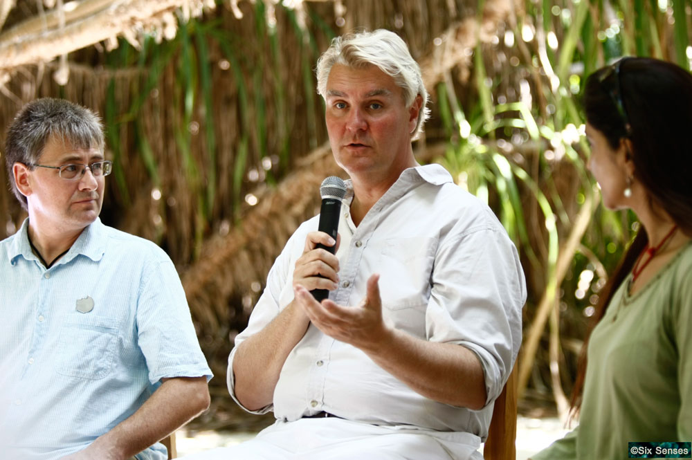 وعند هذه النقطة، يصيح فابيان كوستو عبر مكبر الصوت قائلا إنّ quot;الأرضية الأساسية هي أننا نتحدث بلغة الاقتصاد التي لا تراعي الكرة الأرضيةquot;. ويحرص مؤسس الحواس الست ورئيس مجلس إدارتها سونو شيفدازاني على إبلاغ جميع المشاركين في النقاش إنه من أكثر المعجبين بملك بوتان. وتدور الرؤوس لتستمع إلى شيفدازاني يقول: quot;أنا من أكثر المدافعين عن ملك بوتان، وهي دولة يتحدثون فيها عن الدخل القومي للسعادة عوضاً من الناتج القومي المحلي أو الدخل القومي. واحدة من المشاكل التي نعانيها هي أننا لا نقيس ما هو إجمالي الرفاهية، الاستدامة والازدهار الانساني. يتم الحكم على السياسيين حول العالم استناداً للدخل القومي الذي يحققونه ndash; لماذا لا نقيس الأشياء التي تجعلنا سعداء؟quot;.