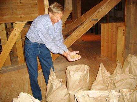 يأخذنا العم مولر الي الطابق العلوي من الطاحونة حيث كل شئ مجهز بشكل دقيق والنظافة تسود المكان، نري عينة من ذلك الطحين ونشاهد الأجولة المعلقة في السقف لاستقبال الطحين،كل شئ في الطاحونة مجهز أو مصنوع من الخشب إنك تشعر بادبيات الطبيعة الجميلة فتود ألا تفارق المكان، كل شئ هنا لايتم بمعزل عن الطبيعة بل هو مستوحي منها،الرحي والخشب والمياه والنباتات والغلال كل شئ هنا هو نقي وطبيعي وبعيد عن اي تلوث.