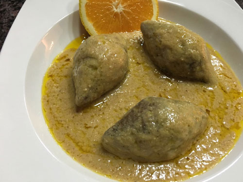 - نقطع عجينة الكبة كرات بحجم البيضة. نفتح فجوة في الكرة وبواسطة السبابة المبللة بالماء نمدها بتأنٍ.