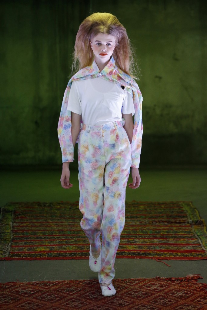 وعرض أنطون بيلينسكي تشكيلة أزياء جاءت لتمزج وتطابق مجموعة أقمشة غير عادية إلى جانب سلسلة من اشتباكات ألوان الباستيل في الطباعات على البدل والفساتين.