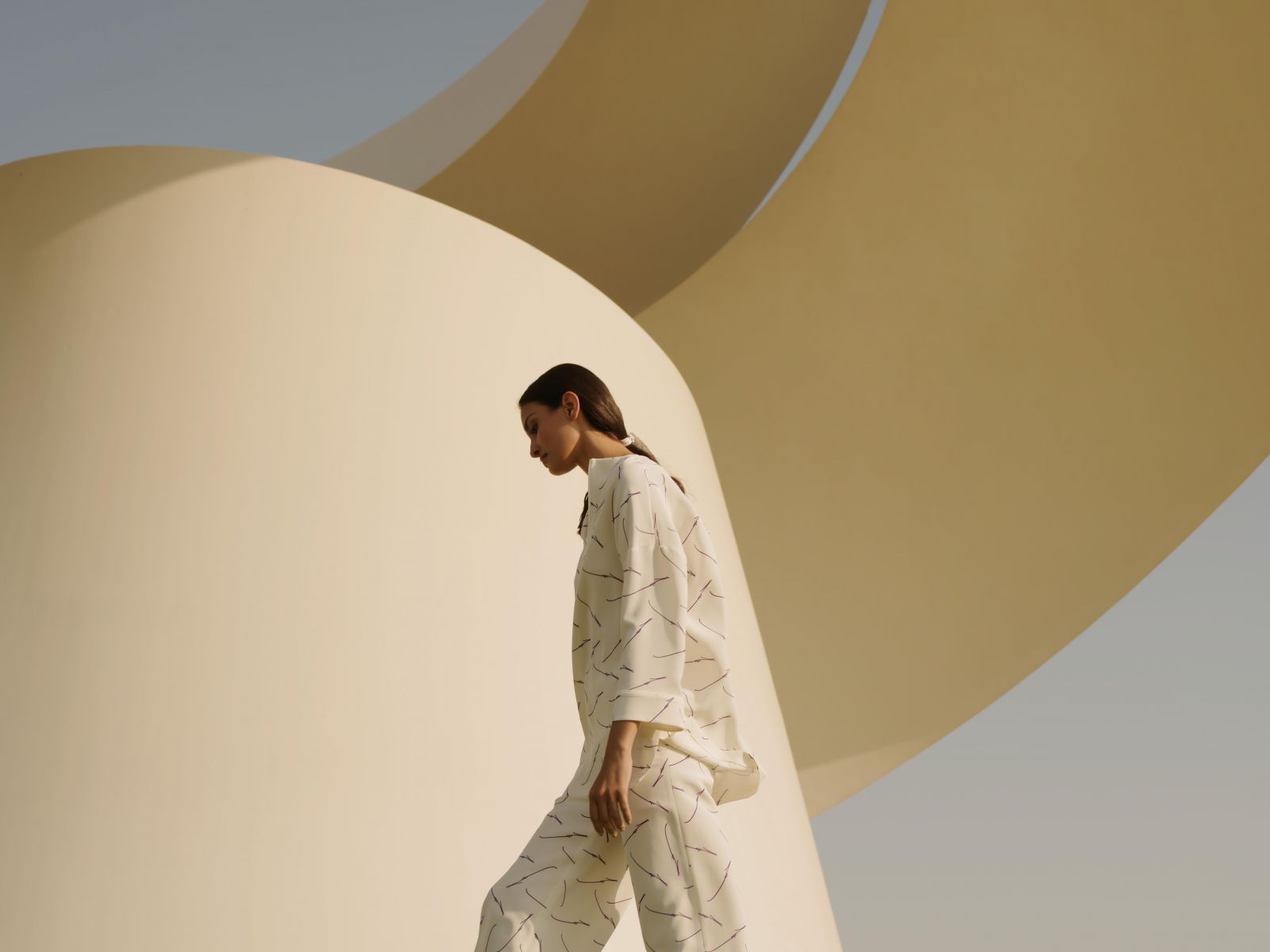 وتزين الأعمال الفنية المميزة بتوقيع مطر مجموعة غنية من القفاطين الأنيقة والعبايات والشيلات وبدلات البناطيل البسيطة المصنوعة من الكتان والكادي الحريري، والتي تكملها إكسسوارات وأحذية بتوقيع Loro Piana، بألوان وجلود خصّت بها الدار منطقة الشرق الأوسط.