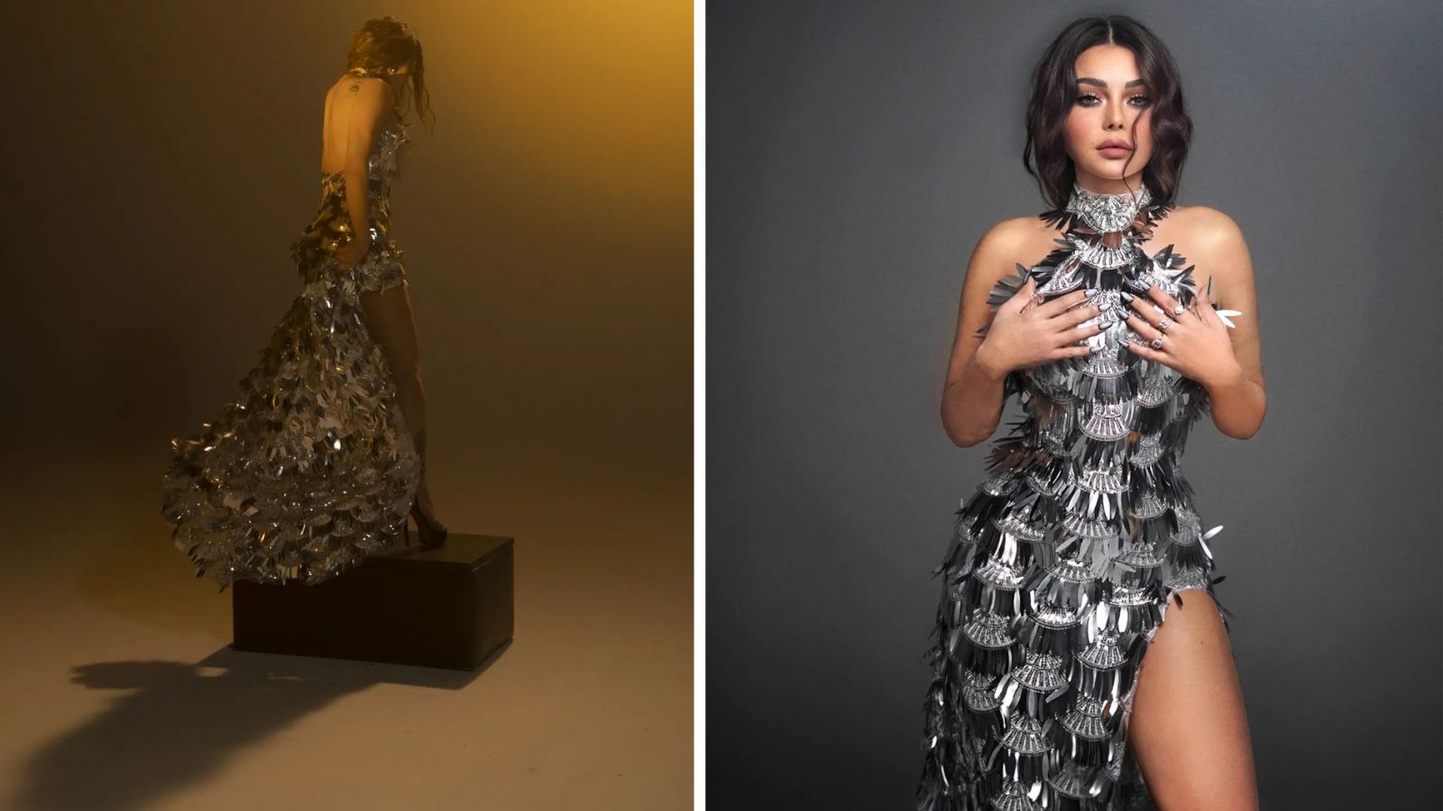 إيلاف: إختارت الفنانة اللبنانية هيفاء وهبي في أغنيتها المصورة الجديدة "ما بضعفش" إطلالات رائعة منها فستان فضي بتوقيع المصمم العالمي نبيل يونس، وقد تم تجهيزه خصيصا" لهذا العمل بإعتماد قماش الترتر وقصاصات ورق المرايا الفضية العاكسة للضوء؛ وجاءت قصته على نمط "هالتر نك" بدون كمين وفتحة من الأسفل.