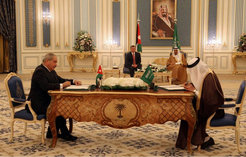 وتحادث العاهلان الملك سلمان والملك عبدالله الثاني اليوم الأربعاء في الرياض حول مستجدات الأوضاع الإقليمية، وسبل التعامل معها في إطار تعزيز أمن واستقرار المنطقة، وبما يخدم المصالح المشتركة للشعبين الشقيقين، إضافة إلى بحث العلاقات الراسخة بين البلدين وسبل تعزيزها.