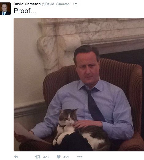 كاميرون يرفع صورته مع القط لاري |