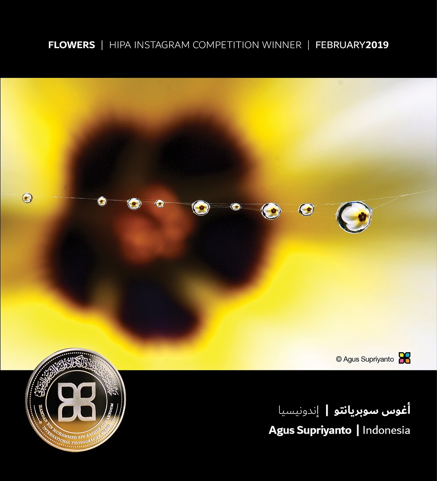 المصور الإندونيسيّ "أغوس سوبريانتو" يقول عن صورته الفائزة في نسخة "زهور": التقطتُ الصورة صباحاً في حديقتي بعد أن أمطرت في الليلة السابقة، شاهدتُ شبكة العنكبوت مغطاةٌ بقطراتٍ من المياه بحيث أستطيع رؤية انعكاس الزهرة خلفها، لذا جاءت الصورة بهذا الشكل الجميل. فزتُ بعدة مسابقاتٍ من قبل لكن الفوز بإحدى مسابقات جائزة حمدان بن محمد الدولية للتصوير مدعاةٌ للفخر حقاً. هذا الفوز أضاف ليَ الكثير كما أنه مَنَحَ صورتي فرصةً رائعةً لانتشارٍ دوليّ واسع. أعتقد أن من أهم نتائج التصوير أنه يُظهر جمالية العالم الذي نعيش فيه.