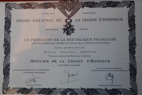 وتم توشيح مزيان-بنجلون وبنسودة، باسم رئيس الجمهورية الفرنسية ، من طرف سفيرة فرنسا بالرباط هيلي لو غال، بحضور شخصيات مغربية وفرنسية تنتمي لعالم الدبلوماسية والسياسة والأعمال.