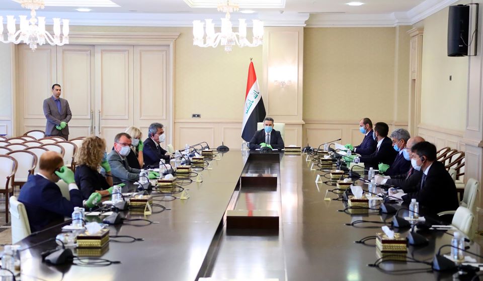 الزرفي مجتمعا مع سفراء دول الاتحاد الاوروبي في العراق