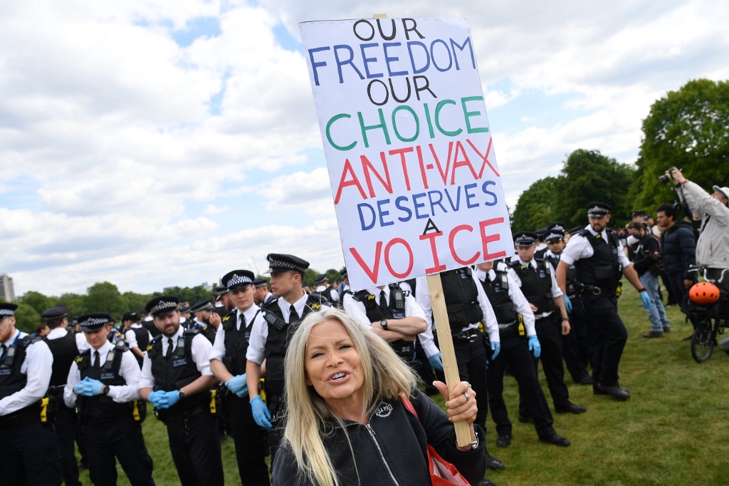 وقد واجهت شرطة العاصمة البريطانية حشودا من المتظاهرين في حديقة هايد بارك في قلب لندن، وأعلنت في بيان عن أنه في المشاهد التي تكررت مع تجمعات صغيرة في أنحاء البلاد، تم اعتقال تسعة عشر شخصًا وإعفاء عشرة آخرين من الغرامات في الموقع خلال احتجاج على قيود فيروس التاجي.