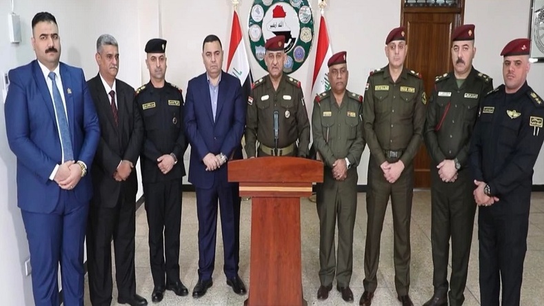 لجنة التحقيق في احداث المنطقة الخضراء خلال مؤتمرها الصحافي في بغداد مساء الاربعاء الاول من كانون الاول ديسمبر 2021 (تويتر)