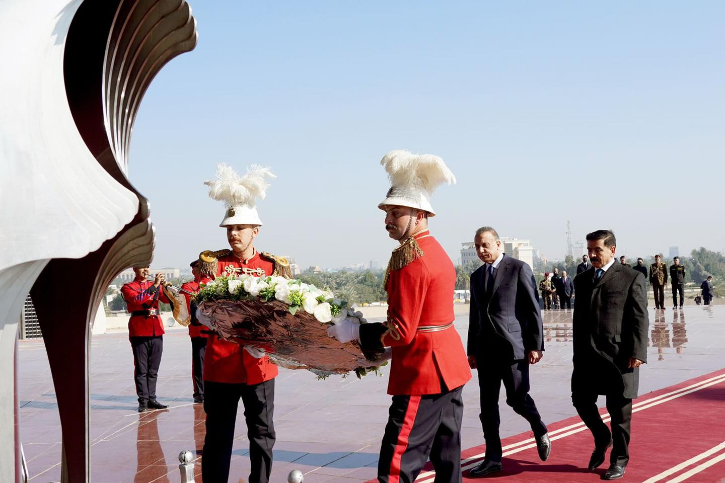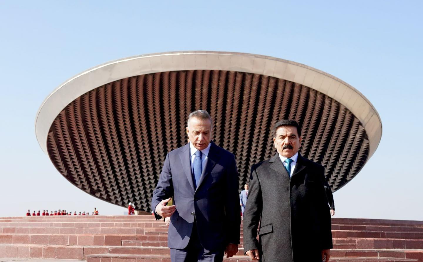 الكاظمي يرافقه وزير الدفاع جمعة عناد لوضع اكليل من الزهور على نصب الجندي المجهول في بغداد الخميس 6 كانون الثاني يناير 2022 (مكتبه الاعلامي)