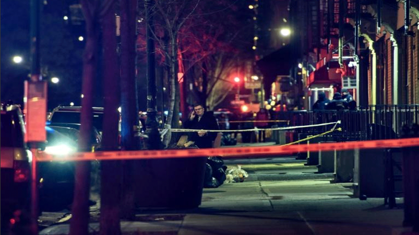 الشرطة تطوق المكان الذي قُتل فيه ضابط شرطة شاب وأصيب آخر بجروح خطيرة في حي هارلم في 22 كانون الثاني/يناير 2022 في مدينة نيويورك.