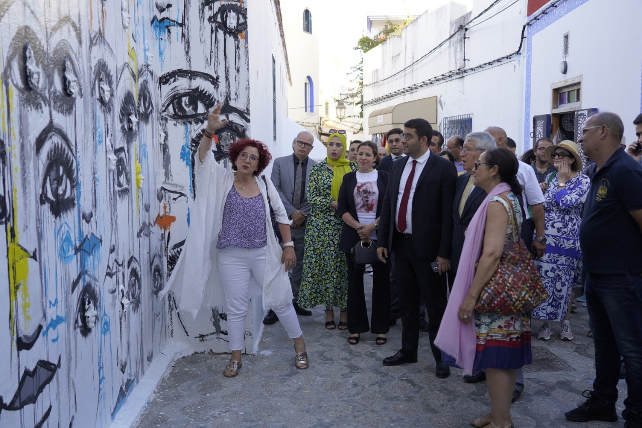 الوزير بنسعيد امام احدى الجداريات الجديدة في أصيلة