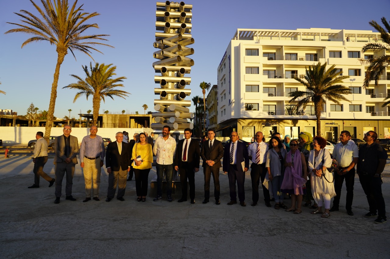 الوزير بنسعيد لدى تدشينه منحوتة الفنان محمد عنزاوي