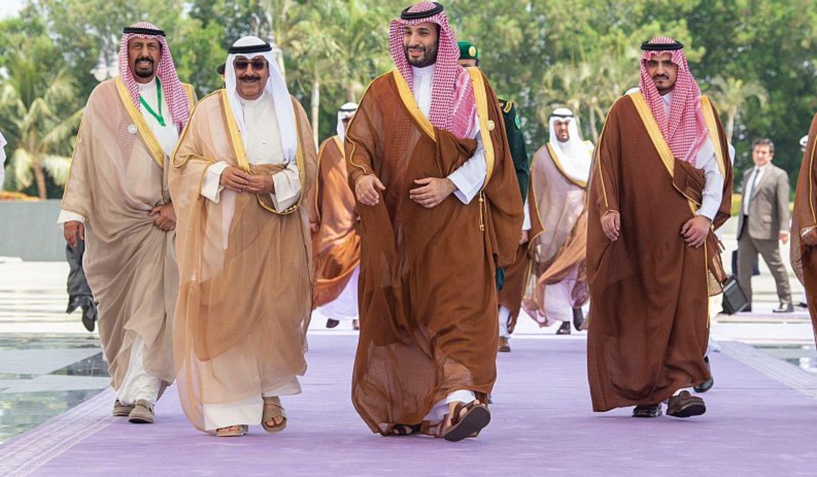 الأمير محمد بن سلمان مستقبلاً مشعل الأحمد الجابر الصباح ولي عهد دولة الكويت