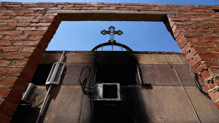صورة تُظهر الدمار الذي لحق بكنيسة أبو سيفين بالجيزة يوم 14 آب\أغسطس 2022 بعد مقتل أكثر من 40 شخصا في حريق شب بالكنيسة القبطية خلال قداس الأحد.