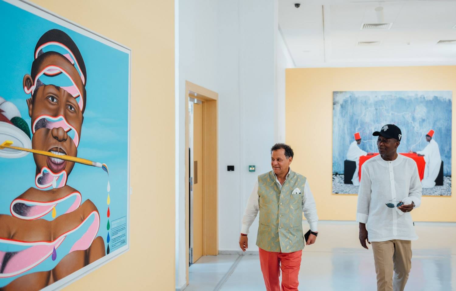 مهدي قطبي يتفقد لوحات معرض في متحف محمد السادس بالرباط