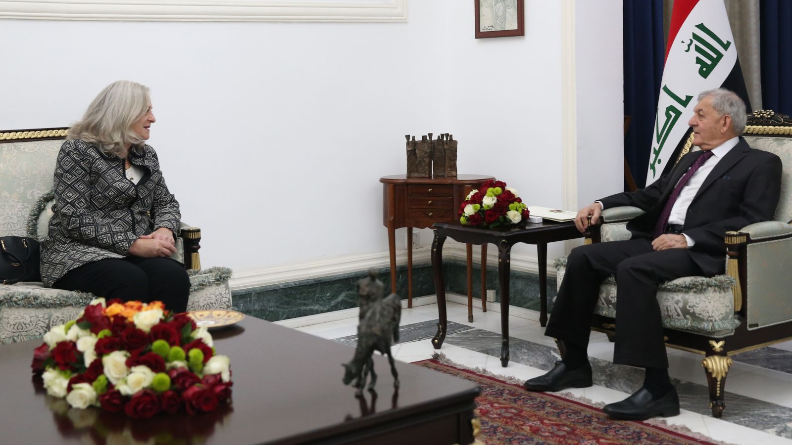 الرئيس رشيد ملتقياً الثلاثاء 18 أكتوبر 2022 مع السفيرة الأميركية في بغداد رومانيسكي (الرئاسة)