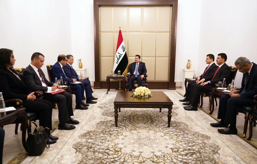 السوداني مجتمعا في بغداد الخميس 9مارس 2023 مع وزير العدل المغربي عبد اللطيف وهبي والوفد القضائي والاستشاري المرافق له (مكتبه)
