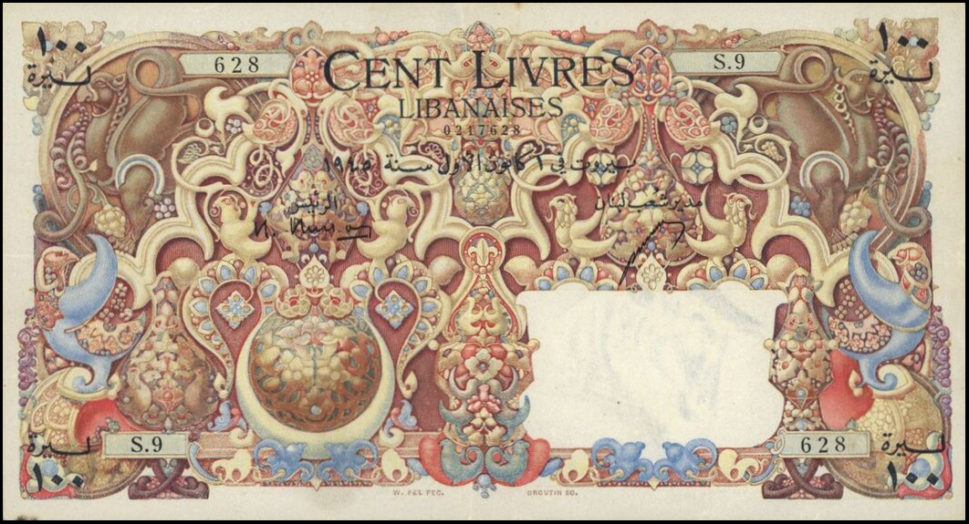 ورقة 100 ليرة لبنانية صادرة في عام 1945، معروفة باسم "السجادة" لجمال تصميمها