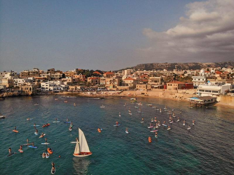 سباحة وتجذيف في يوم مشمس قبالة ساحل البترون، شمال لبنان