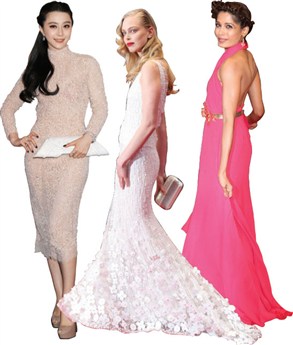 نيكول كيدمان اختارت أن تفتتح المهرجان بفستان مورّد من مجموعة laquo;ديورraquo; Dior للأزياء الراقية، واختارت كاري ماليغان بطلة فيلم The Great Gatsby ديور أيضاً ملتزمة الإطلالة الناعمة التي تتماشى مع وجهها الطفولي. أمّا الممثلة وعارضة الأزياء الصينية فان بينغ بينغ، فقد اختارت فستاناً ناعماً باللون الوردي من لويس فويتون وآخر للمصمم إيلي صعب، الذي وقّع أيضاً إطلالة كل من آنا أوريلي، أور آتيكا والمخرجة اللبنانية نادين لبكي.