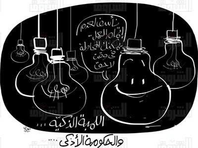 وها هي ازمة الكهرباء المتصاعده تؤثر في شعبية الرئيس، بدليل ان غادة شريف التي عرضت نفسها ملك يمين على السيسي تعبر عن ضيقها بسبب انقطاع التيار: «طب تصدق بالله يا حمادة؟.. أنا نسيت شكل بيتنا من الداخل.. بانزل والنور مقطوع، وأرجع والنور مقطوع.. أعتقد والله أعلم إنه أربع غرف وصالة.. ولا ثلاث وصالة؟.. ولا خمس؟.. لكن الأكيد المؤكد إنك أول ما تدخل ستجد المطبخ على يسارك.. ولا على يمينك؟.. بصراحة يا حمادة أنا فقط نفسي النور يرجع، ليس طمعا والعياذ بالله، بل لأعرف ما هو الشيء اللى باتكعبل فيه ما إن أدخل غرفتي.. أم أنها ليست غرفتي؟.. شيء كده بجوار باب الغرفة مباشرة.. أكيد هذا ليس ابني، فعلى ما أذكر أن ابني كان طويل.. ولا قصير؟.. زمانه طوِل ما شاء الله!.. هل ممكن يكون التلفزيون؟.. فاكر الاختراع ده يا حمادة اللي كنا بنشوفه زمان؟.. هييه.. والله أيام زمان دي ما تتعوضش.. أنا بس نفسي أسأل ولو فيها رزالة، هذا المسؤول الذي أطلق تصريحا ناريا في بداية شهر رمضان أن أزمة الكهرباء ستنتهي بعد 45 يوما، يا ترى أخباره إيه؟.. منوَر يا باشا!.. الشهادة لله الرجل لم يكذب ولم يبالغ، فهو لم يحدد بعدها بأد إيه..يعني بعد 45 يوم بيومين أو بثلاثة أو بشهرين أو بسنتين.. وطالما الرجل لم يحدد يبقى عدّاه العيب!..والغريب أنهم رفعوا سعر الكهرباء!..ماذا تفعل الوزارة بهذه الأموال إذا كانت طبقا لتصريحات متحدثهم لم تقم بصيانة المحطات منذ عشر سنوات؟!.. ولا تترك الكاتبة الفرصة من دون ان تهاجم الاخوان ومن والاهم: الأهم بقى يا حمادة يا ريت تفكرني كده كام مرة كتبنا نحذر من الموظفين الإخوان في وزارة الكهرباء؟.. وكام مرة أكثر من إعلامي ظهر في برنامجه يتحدث عن الموظفين الإخوان بوزارة الكهرباء؟..».