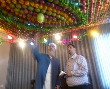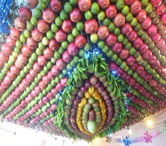 | المظلة أو العرش مكون من الرمان والليمون والفلفل وغيره من الفاكهة |