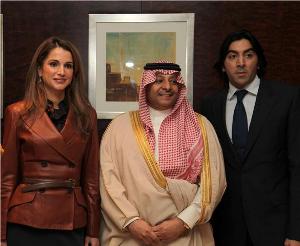 | من اليسار إلى اليمين: الملكة رانيا العبد الله والمدير التنفيذي لمركز الأمير سلمان لأبحاث الإعاقة الدكتور سلطان السديري والمدير التنفيذي في منطقة الشرق الاوسط و أسيا وأوروبا لشركة جميناي السيد تارون مهروتري. |
