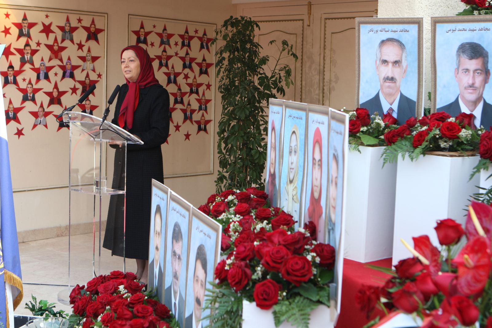 | رئيسة المجلس الوطني للمقاومة الايرانية مريم رجوي خلال تأبين قتلى أشرف |