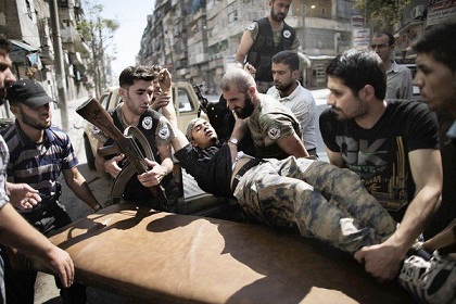 | محاولة لاسعاف احد عناصر الجيش الحر |